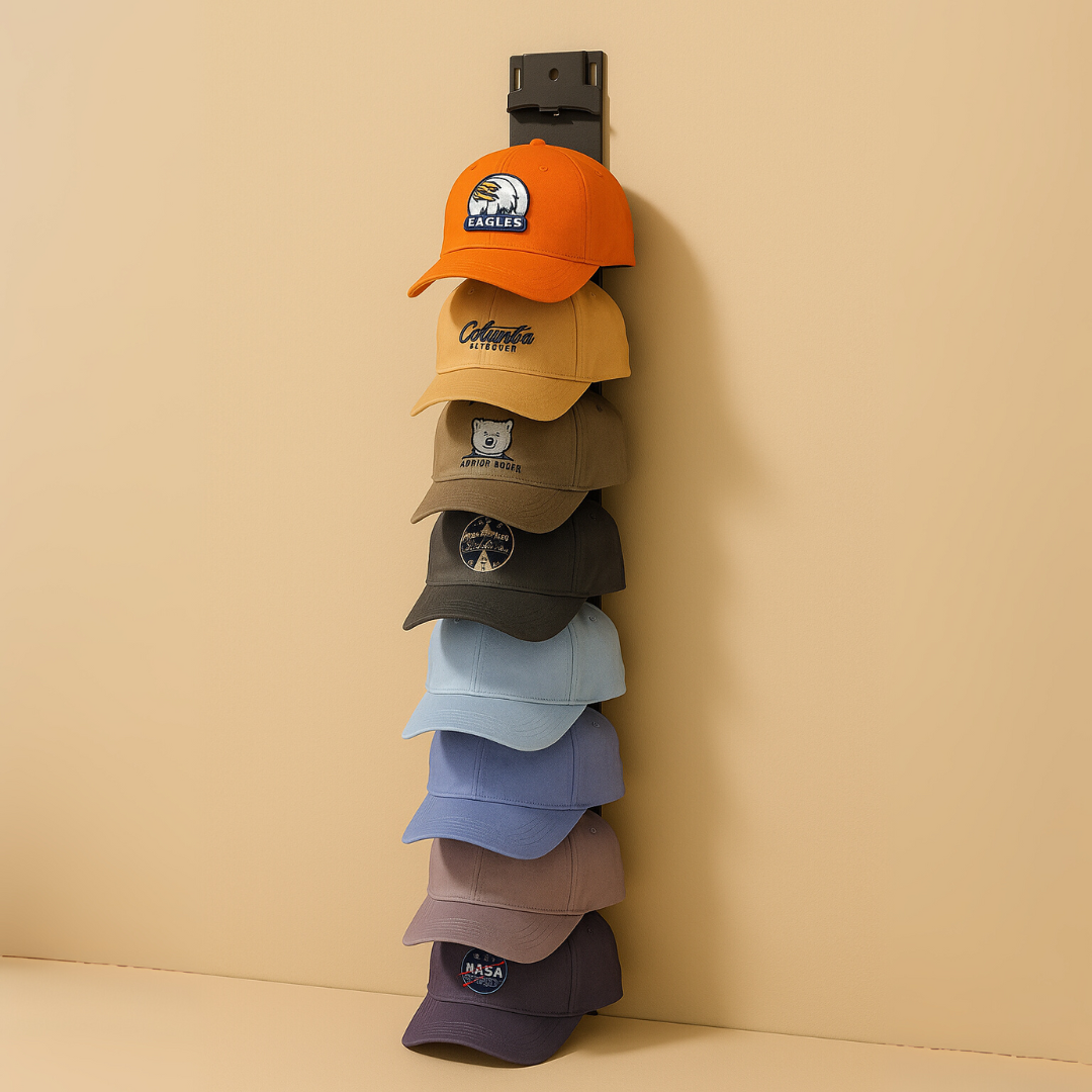 Porta Bonés – Organização prática e estilosa para sua coleção.
