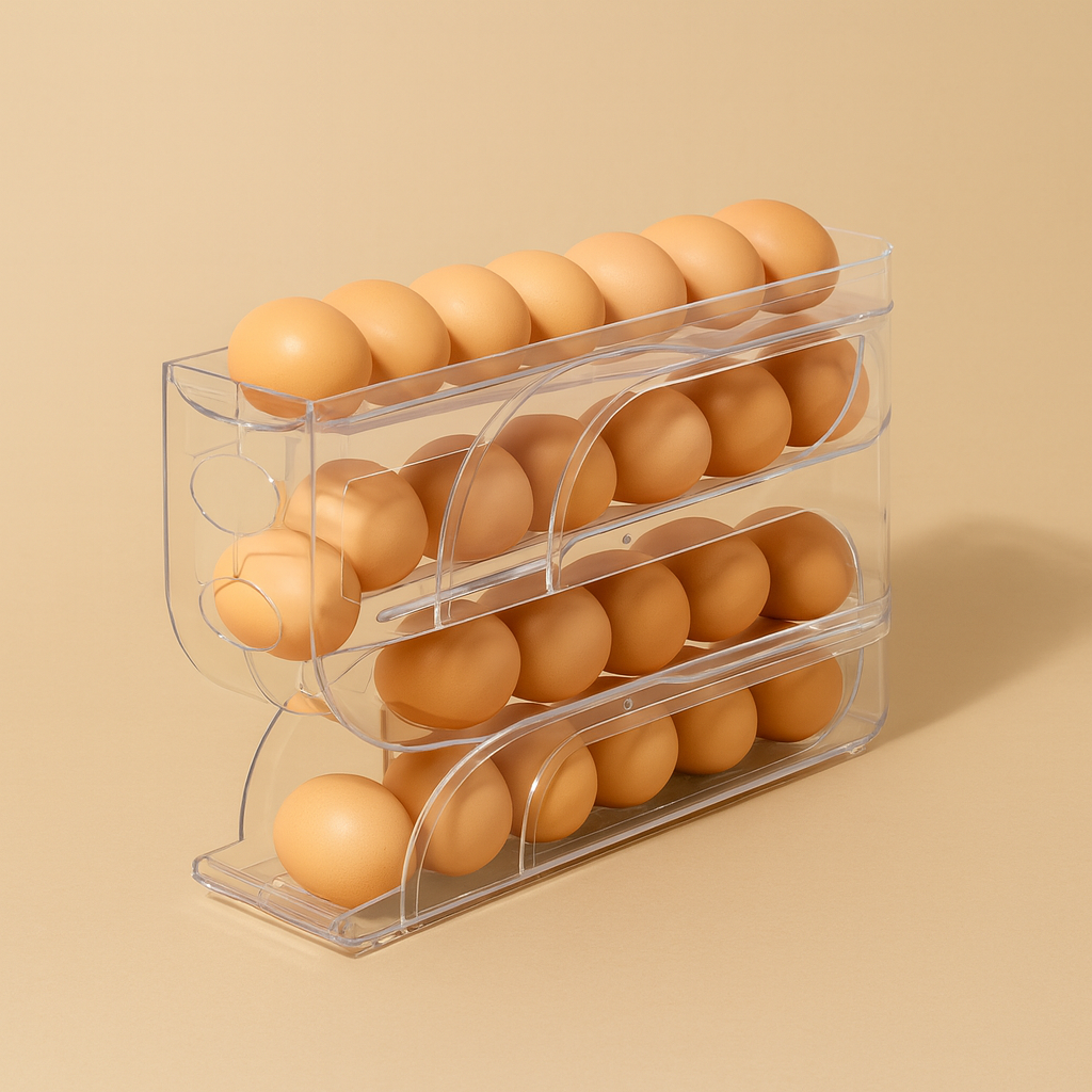 Com capacidade para até 30 ovos, essa caixa organizadora possui sistema de rolamento automático, que faz os ovos deslizarem suavemente para frente conforme você retira, garantindo fácil acesso no dia a dia. Fabricado em plástico de alta qualidade e seguro para contato com alimentos, é resistente, livre de odores e durável. Seu design compacto se adapta facilmente a prateleiras da geladeira, armários ou até bancadas, trazendo organização sem ocupar espaço.