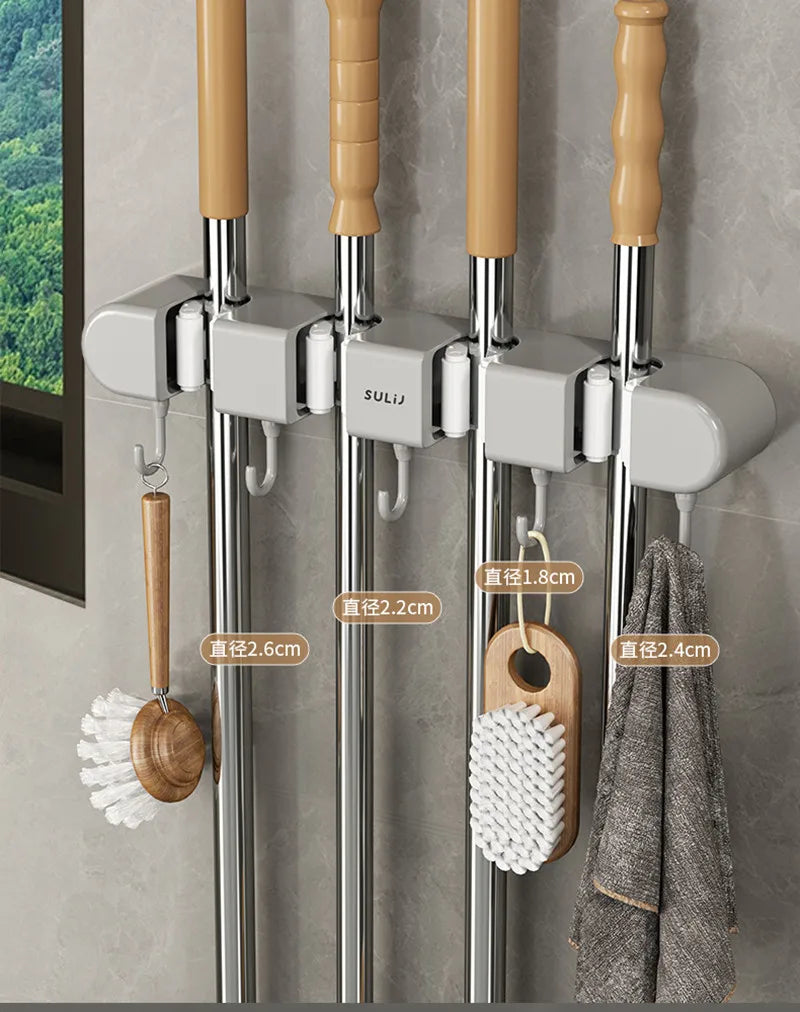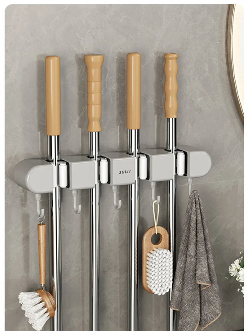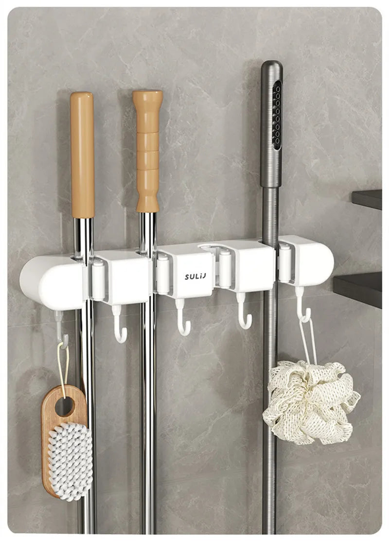 Fabricado em material resistente, o suporte possui tecnologia de fixação forte e segura, suportando peso sem escorregar. Seu sistema de encaixe antiderrapante mantém vassouras, rodos, esfregões e até utensílios de cozinha no lugar, sem cair. Compacto e discreto, combina perfeitamente com qualquer ambiente — seja cozinha, banheiro, lavanderia ou área externa.